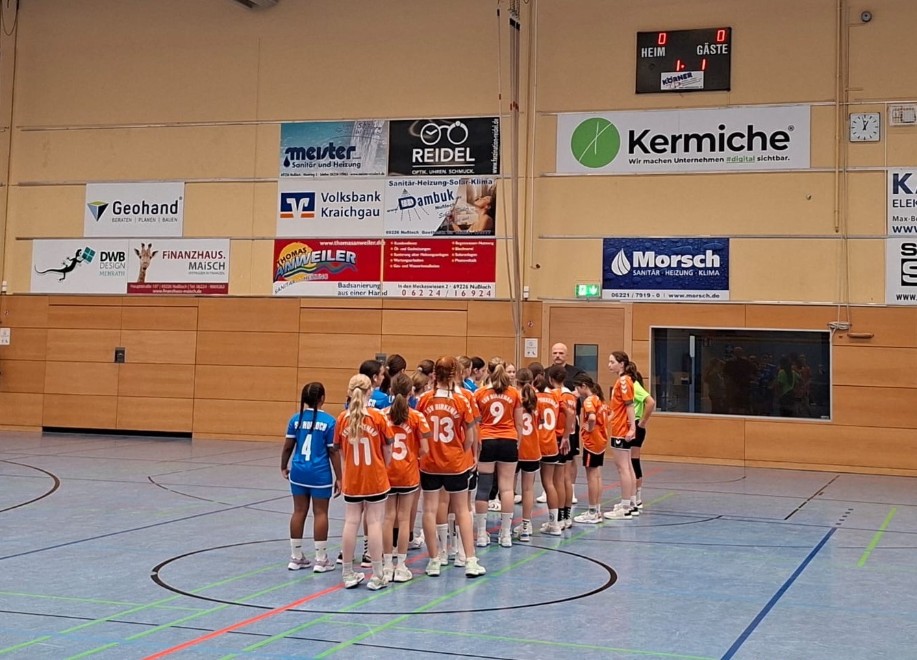 Die Birkenauer D-Mädels gewinnen bei der SG Nußloch nach einem spannenden Bezirksoberliga-Spiel mit 18:22 (9:12). Gegen den bisherigen Tabellenzweiten zeigte die Mannschaft eine überzeugende Leistung mit flüssigem Angriffsspiel, hoher Laufbereitschaft und einer überragenden Torhüterin.