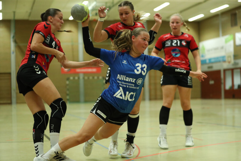In der Folge boten sich mehrfach Gelegenheiten zur eigenen Führung, doch sowohl ein Siebenmeter als auch Überzahlsituationen blieben ungenutzt. So entwickelte sich ein zähes Ringen, bei dem der TSV lange einem knappen Rückstand hinterherlief. Erst kurz vor der Pause sorgten Marie Harbarth und Josi Leinert mit ihren Toren für die erste Führung – mit dem 12:11 ging es in die Kabine.