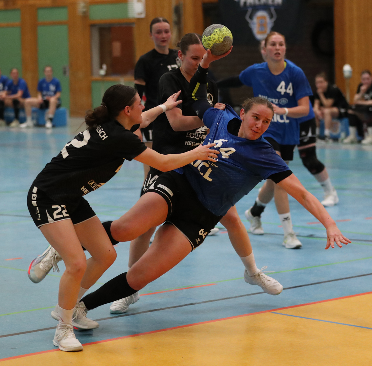 Der TSV brauchte etwas um in die Partie zukommen. Zwar traf Mariella Schütz mit dem ersten Angriff bereits nach 37 Sekunden zum 1:0, doch in der Folge fand man zunächst keine Mittel um durch die gegnerische Deckung zu kommen. Die erste und einzige Führung der Gäste egalisierte Josi Leinert mit einem wuchtigen Wurf aus dem Rückraum (3:3, 7.). Die Hausherrinnen stellten mit einem 3:0 Lauf auf 7:4 (15.). Statt den Vorsprung aber kontinuierlich auszubauen, bot die sonst so starke Defensive teils große Lücken an, die die Gastmannschaft zu Toren einlud. Fünf Minuten vor dem Halbzeitpfiff nahm Katharina Leinert beim Stand von 13:10 eine Auszeit, um auf ihre Schützlinge einzuwirken. Kaum war das Spiel wieder angepfiffen verhängte das Schiedsrichtergespann eine 2 Minuten Strafe gegen die Birkenauerinnen. Den fälligen 7 Meter verwandelten die Gäste zum 13:11. Gutsche und Schütz stellten auf den 15:11 Halbzeitstand.
